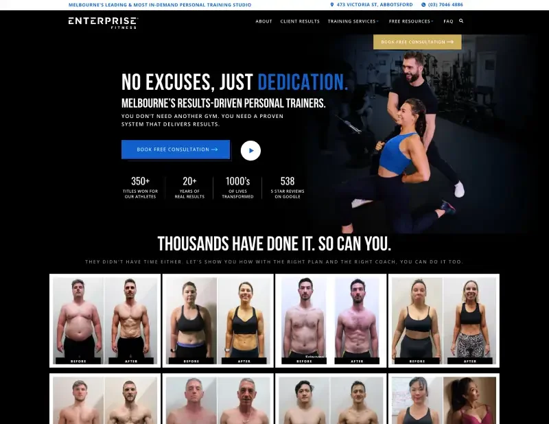 Real-world impact: Our client, Enterprise Fitness, simplified their navigation by removing competing elements and focusing on core services, which contributed to a 24% increase in consultation bookings. Every menu item should either build trust or move visitors toward conversion.